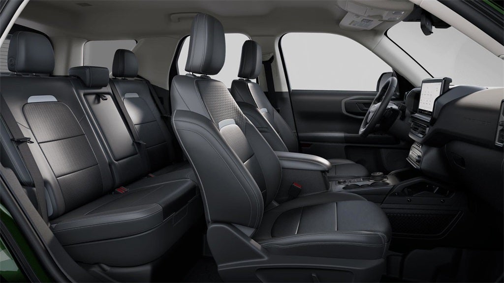 - Conquer rugged terrain and city streets alike with the 2025 Ford Bronco Sport Badlands 4x4, finished in bold Eruption Green Metallic. Designed for off-road adventure and everyday utility, this capable SUV is powered by a 2.0L EcoBoost engine paired with an 8-speed automatic transmission. The exterior features LED fog lamps, signature LED headlights, front recovery hooks, a steel-plated front bumper, and black roof rack side rails for extra functionality and style. Inside, the Dark Space Gray leather-trimmed interior blends durability and comfort with heated, power-adjustable front seats, a premium wrapped heated steering wheel, rubberized flooring, and a rugged rubber cargo floor. A digital instrument cluster, SYNC 4 with a large 13.2" touchscreen, and a 110V/400W outlet ensure modern connectivity and convenience. Built to explore, the Bronco Sport Badlands is equipped with the Terrain Management System featuring seven G.O.A.T. Modes, Trail Control with one-pedal driving, and a twin-clutch rear drive unit for superior off-road performance. Advanced safety tech like Ford Co-Pilot360 Assist 2.0, a full suite of airbags, and a SecuriLock anti-theft system offer peace of mind on every journey. Whether you're tackling trails or daily drives, this Bronco Sport Badlands is your ticket to adventure.