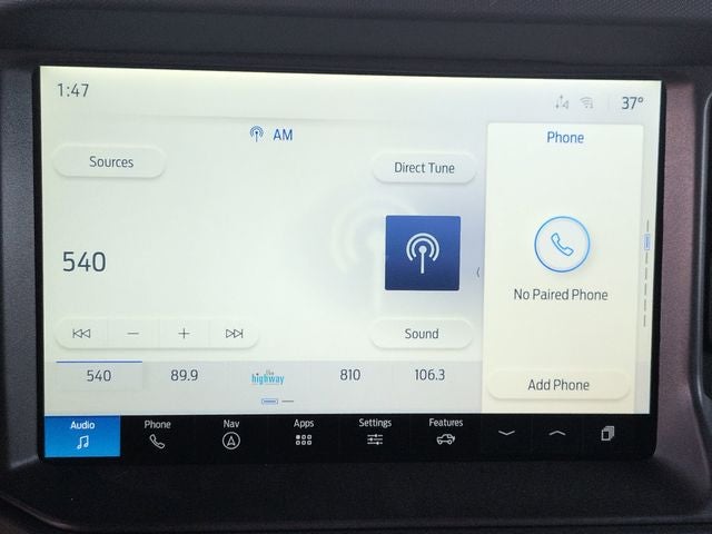 • SYNC 4 -inc: 12" LCD capacitive touchscreen w/swipe capability, wireless phone connection, cloud connected, 911 Assist, wireless Apple CarPlay and Android Auto compatibility, digital owner's manual and conversational voice command recognition