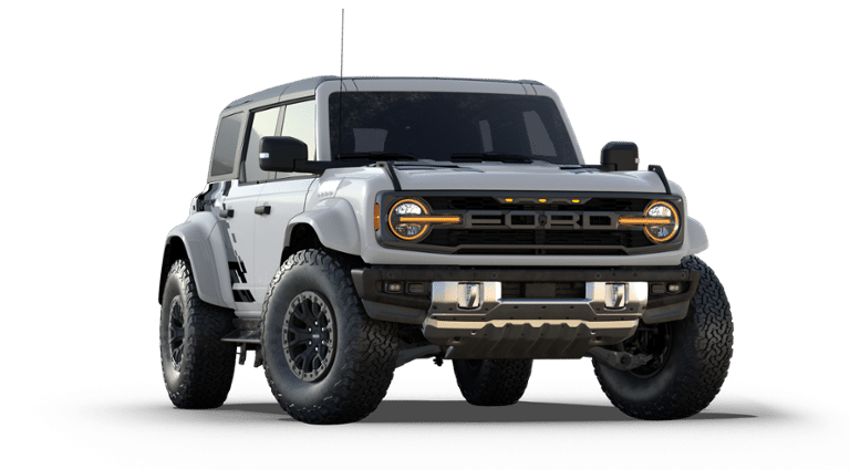 - Experience the ultimate off-road performance and rugged capability in this 2025 Ford Bronco Raptor 4-Door 4x4, finished in striking Oxford White. Built to conquer any terrain, the Bronco Raptor is powered by a 3.0L EcoBoost V6 engine paired with a 10-speed automatic transmission, delivering impressive strength and responsiveness wherever your adventure leads. Designed for the serious off-road enthusiast, this Bronco features HOSS 4.0 suspension with FOX Live Valve dampers, front and rear locking differentials, and 37-inch all-terrain tires mounted on 17-inch black forged beadlock-capable wheels. Heavy-duty metal bash plates, modular steel bumpers, and tow hooks on both ends ensure youre ready for even the toughest trails. Inside, the cabin blends rugged durability with refined comfort. Enjoy Onyx leather-trimmed and suede seats with Code Orange seat belts, a sport leather steering wheel with paddle shifters, and advanced technology like a 12-inch LCD touchscreen, digital instrument cluster, and 360-degree camera system. The Lux Package enhances every drive with smart connectivity and convenience, while features like FordPass Connect, Terrain Management System with G.O.A.T. Modes, and front stabilizer bar disconnect keep you in control on and off the road. Completing the look is a black-painted hard top with a sound-deadening headliner and bold Raptor graphics, giving this Bronco an unmistakable presence. Powerful, capable, and built to thrill the 2025 Ford Bronco Raptor is the ultimate combination of performance engineering and iconic design.