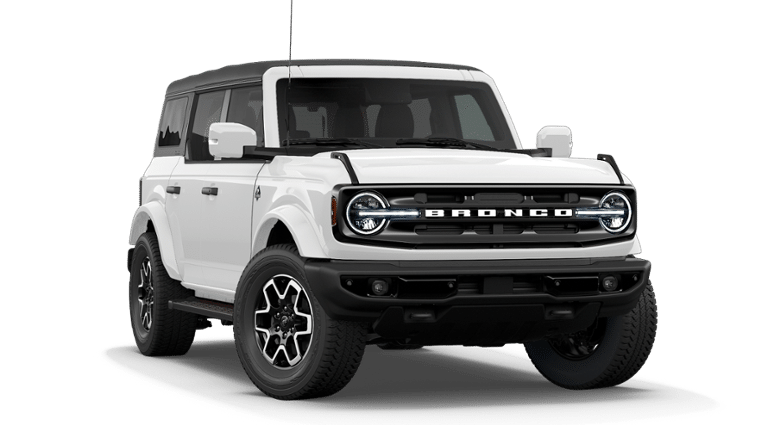 - The Ford Bronco Outer Banks blends iconic off-road heritage with refined comfort, delivering a premium SUV experience thats just as confident on Michigan backroads as it is cruising through town. Finished in classic Oxford White, this 4-door 4x4 model makes a bold statement with its clean lines, signature LED lighting, and unmistakable Bronco stance. Under the hood, the powerful 2.7L EcoBoost V6 engine pairs seamlessly with a 10-speed automatic transmission, offering impressive performance, smooth acceleration, and confident capability. Whether you're navigating snow-covered roads or heading out for a weekend adventure, the Broncos advanced 4x4 system and Terrain Management System with G.O.A.T. Modes (Goes Over Any Type of Terrain) help you adapt to changing conditions with ease. The Outer Banks series elevates comfort with a refined interior featuring leather-trimmed/vinyl black seats, a leather-wrapped steering wheel and gear knob, and power-adjustable front seating (10-way driver, 8-way passenger). Dual-zone automatic climate control, a digital cluster display, and a spacious 60/40 split-fold rear seat make every drive as practical as it is comfortable. Technology is front and center with a large 12-inch center touchscreen powered by SYNC 4, enhanced voice recognition, and seamless smartphone connectivity. The Lux Package adds standout features including a 12-speaker audio system with SiriusXM, 360-degree camera, and Adaptive Cruise Control for added convenience and confidence behind the wheel. Designed for both style and strength, this Bronco rides on 18-inch machined black-painted aluminum wheels wrapped in rugged 32-inch all-terrain tires. A gray molded-in-color hard top enhances durability while maintaining a distinctive look, and convenient storage bags for the front roof panels and doors make open-air adventures easy and organized. Additional highlights include: Ford Co-Pilot360 driver-assist technologies Push-button start Hill Start Assist 4-wheel disc brakes with ABS Tow hooks (front and rear) Easy Fuel capless fuel filler Smart charging USB ports Open front axle differential The 2026 Bronco Outer Banks is built for drivers who want elevated style, advanced technology, and true 4x4 capability all wrapped in a modern, unmistakably Bronco package.