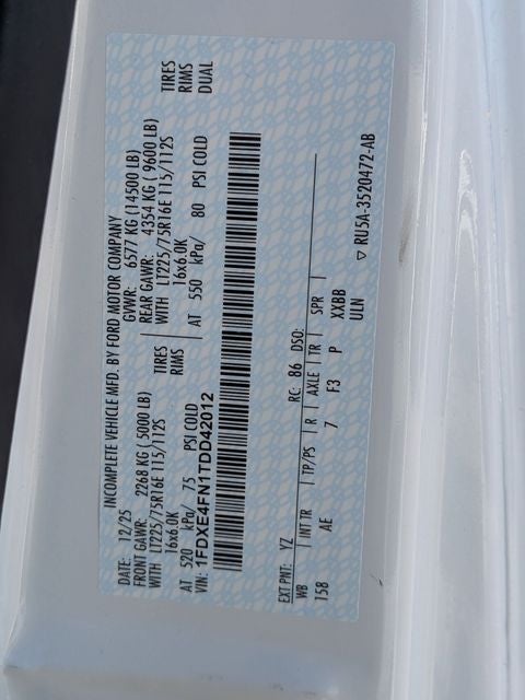 2026 E-450SD RWD 7.3L V8, 6-Speed Automatic with Overdrive, RWD, Oxford White, Medium Flint Vinyl.