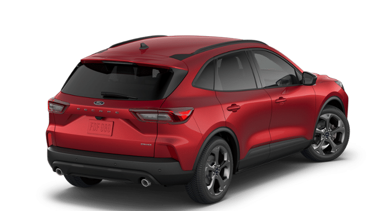 - Experience spirited style and confidence in this 2026 Ford Escape ST-Line AWD, finished in striking Rapid Red Metallic Tinted Clearcoat. Built on a 106.7-inch wheelbase, this Escape blends athletic design with everyday versatility, highlighted by ST-Lineexclusive exterior features like a black mesh grille, sporty rear spoiler, signature ST-Line badging, and unique rear skid plates. LED headlamps, privacy glass, and sleek roof-rack side rails complete its sharp, modern look, while 18-inch Rock Metallic painted wheels add a refined, performance-inspired touch. Inside, the ST-Line cabin brings a sporty, driver-focused feel with Ebony cloth/vinyl seats accented by bold red stitching, a flat-bottom steering wheel, and supportive sport bucket front seats. Dual-zone automatic climate control, a rotary gear shift dial, multiple USB powerpoints, and thoughtfully placed storage make every drive more comfortable and convenient. Rear passengers benefit from cupholders, armrest, and ample space for daily driving or weekend getaways. Powered by the efficient 1.5L EcoBoost engine with Auto Start-Stop Technology, paired to an 8-speed automatic transmission and intelligent all-wheel drive, this Escape delivers responsive performance with confidence in all Michigan seasons. The sport-tuned suspension enhances handling, while a comprehensive suite of driver-assist featureslike BLIS with Cross-Traffic Alert and Intelligent Access with Push-Button Startkeeps your drive modern and secure. This Escape includes several premium packages and upgrades, beginning with the Cold Weather Package, adding heated front seats, a heated steering wheel, heated side mirrors, and Remote Start for year-round comfort. The Tech Package #1 brings advanced convenience and safety features like Adaptive Cruise Control, Lane Centering Assist, Evasive Steering Assist, Rear Parking Sensors, and a vibrant 13.2-inch touchscreen with Connected Navigation (1-year included). Additional upgrades include all-weather floor liners with carpet mats and a mini spare wheel/tire for added peace of mind. Sporty, smart, and packed with modern features, this 2026 Escape ST-Line AWD is built to elevate every drive with style, comfort, and confidence.