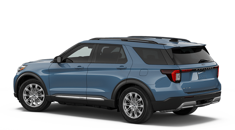 2026 Explorer 4D Sport Utility Active 4WD Explorer Active, 4D Sport Utility, 2.3L EcoBoost I-4, 10-Speed Automatic, 4WD, Vapor Blue, Dark Space Gray Premium Synthetic.