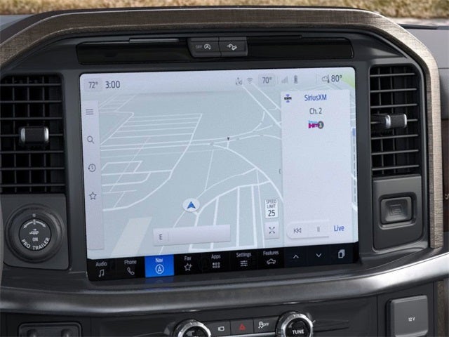 Check out all of the features on this 2026 Ford F-150 Equipment Group 601A High (Electronic Locking with 3.55 Axle Ratio and Wheels: 20 Chrome-Like PVD), Ford Connectivity Package (1-Year Included), FX4 Off-Road Package (4x4 FX4 Off-Road Bodyside Decal, Hill Descent Control, and Off-Road Tuned Front Shock Absorbers), GVWR: 7,400 lbs Payload Package, Internet access capable: 5G Modem - Ford Connectivity Package, 4WD, 4-Wheel Disc Brakes, 8 Speakers, ABS brakes, Adjustable pedals, Air Conditioning, Alloy wheels, AM/FM radio: SiriusXM with 360L, Auto High-beam Headlights, Auto tilt-away steering wheel, Auto-dimming door mirrors, Auto-dimming Rear-View mirror, Automatic temperature control, Brake assist, Chrome wheels, Compass, Delay-off headlights, Driver door bin, Driver vanity mirror, Dual front impact airbags, Dual front side impact airbags, Electronic Stability Control, Emergency communication system: SYNC 4 911 Assist, Front anti-roll bar, Front Bucket Seats, Front Center Armrest, Front dual zone A/C, Front LED fog lights, Front reading lights, Front wheel independent suspension, Fully automatic headlights, Garage door transmitter, Genuine wood dashboard insert, Heated door mirrors, Heated front seats, Heated rear seats, Heated steering wheel, Illuminated entry, Leather steering wheel, Low tire pressure warning, Memory seat, Navigation system: Connected Navigation, Occupant sensing airbag, Outside temperature display, Overhead airbag, Overhead console, Panic alarm, Passenger door bin, Passenger vanity mirror, Pedal memory, Power door mirrors, Power Driver & Passenger Seat, Power driver seat, Power steering, Power windows, Pro Access Tailgate, Pro Power Onboard - 2KW, Radio data system, Radio: B&O Sound System by Bang and Olufsen, Rain sensing wipers, Rear reading lights, Rear seat center armrest, Rear step bumper, Rear window defroster, Remote keyless entry, Security system, Speed control, Split folding rear seat, Steering wheel memory, Steering wheel mounted audio controls, SYNC 4 with Enhanced Voice Recognition, Tachometer, Telescoping steering wheel, Tilt steering wheel, Traction control, Trip computer, Turn signal indicator mirrors, Twin Panel Moonroof, Variably intermittent wipers, and Ventilated front seats.