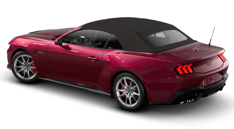 - Experience open-air performance like never before in this stunning 2026 Ford Mustang GT Premium Convertible. Finished in the head-turning Molten Magenta Metallic exterior and paired with a refined Black Onyx leather-trimmed interior, this Mustang blends iconic muscle with modern luxury in a way only Fords flagship sports car can. Under the hood, the legendary 5.0L Ti-VCT V8 delivers exhilarating power, enhanced by a 10-speed automatic transmission and a 3.55 limited-slip rear axle for sharp, confident performance. The Active Valve Performance Exhaust allows you to tailor the Mustangs roarfrom subtle to track-inspiredright from the drivers seat. Brembo brakes with performance linings bring impressive stopping power, complemented by red calipers with white logos for a bold, athletic look. Inside, youre surrounded by premium craftsmanship and next-generation technology. A fully digital 12.4" cluster display and 13.2" center touchscreen with SYNC 4 put your controls right where you need them. Ambient interior lighting with MyColor customization, a heated leather-wrapped steering wheel, and dual-zone climate control elevate every drive. The B&O 12-speaker sound system transforms the cabin into a concert hall, perfect for top-down cruising. Safety and driver confidence come standard thanks to Ford Co-Pilot360 Assist+, offering intelligent features such as adaptive cruise, lane-center assist, and more. Added conveniences like Intelligent Access with push-button start, rain-sensing wipers, Track Apps, and rear parking sensors ensure a seamless driving experience. Riding on 19 Shadow Silver painted aluminum wheels with W-rated performance tires and finished with premium details like black seatbelts with red stripes and custom GT floor liners, this convertible is built to stand out from every angle. Designed in Flat Rock and engineered for driving enthusiasts, this 2026 Mustang GT Premium Convertible delivers the perfect combination of power, luxury, and unmistakable Mustang presence.