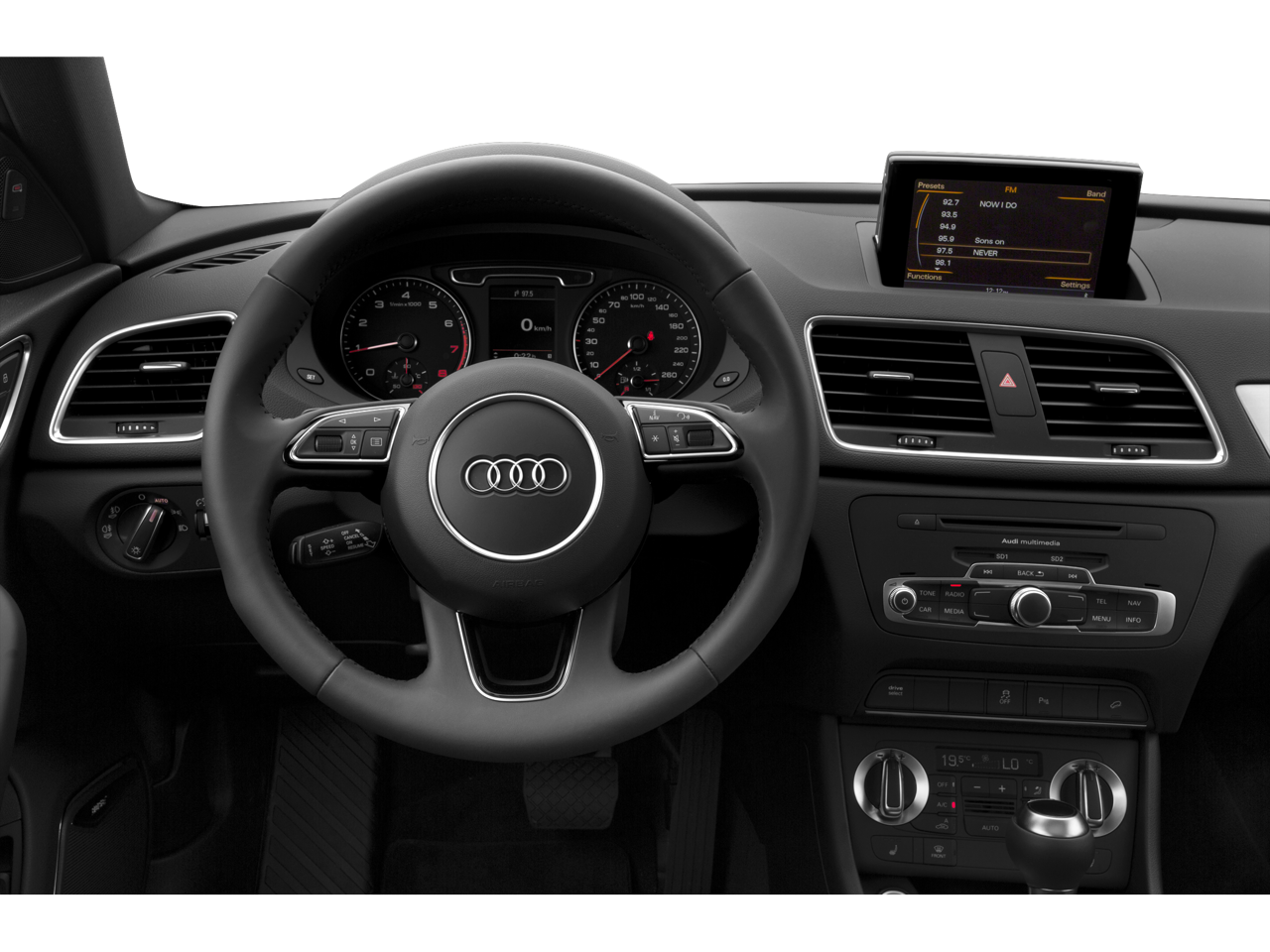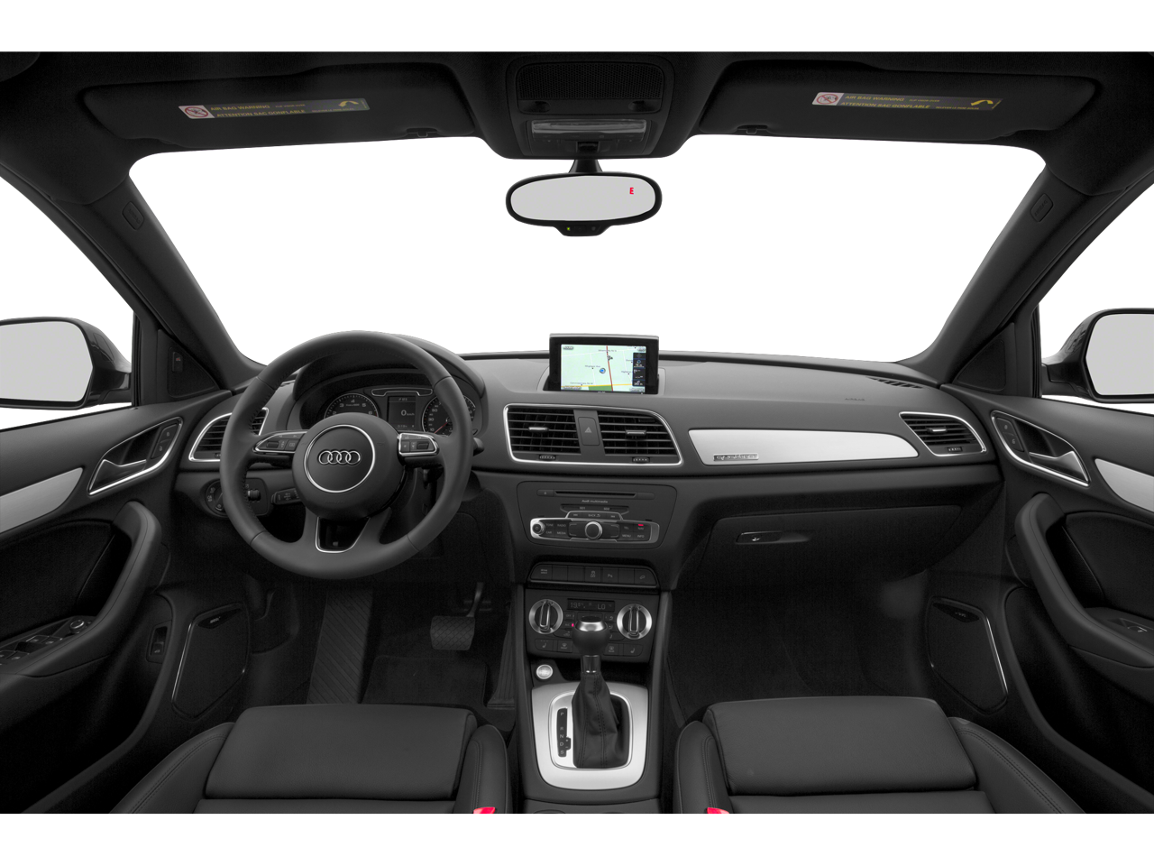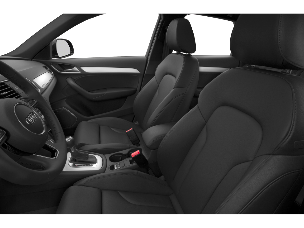 Check out all of the features on this 2015 Audi Q3 Driver Assistance Package (Parking System Plus w/Rearview Camera), 4-Wheel Disc Brakes, ABS brakes, Air Conditioning, Alloy wheels, AM/FM radio, Audi Guard Cargo Mat, Auto-dimming Rear-View mirror, Automatic temperature control, Axle Ratio: TBD, Brake assist, CD player, Compass, Driver vanity mirror, Dual front impact airbags, Dual front side impact airbags, Electronic Stability Control, Front dual zone A/C, Front fog lights, Front reading lights, Fully automatic headlights, Heated door mirrors, Heated Front Seats, Heated front seats, High intensity discharge headlights: Xenon plus, Leather Seating Surfaces, Leather steering wheel, Low tire pressure warning, Passenger door bin, Passenger vanity mirror, Power door mirrors, Power driver seat, Power passenger seat, Power steering, Power windows, Rain sensing wipers, Rear window defroster, Remote keyless entry, Security system, Spoiler, Steering wheel mounted audio controls, Traction control, Trip computer, and Turn signal indicator mirrors.