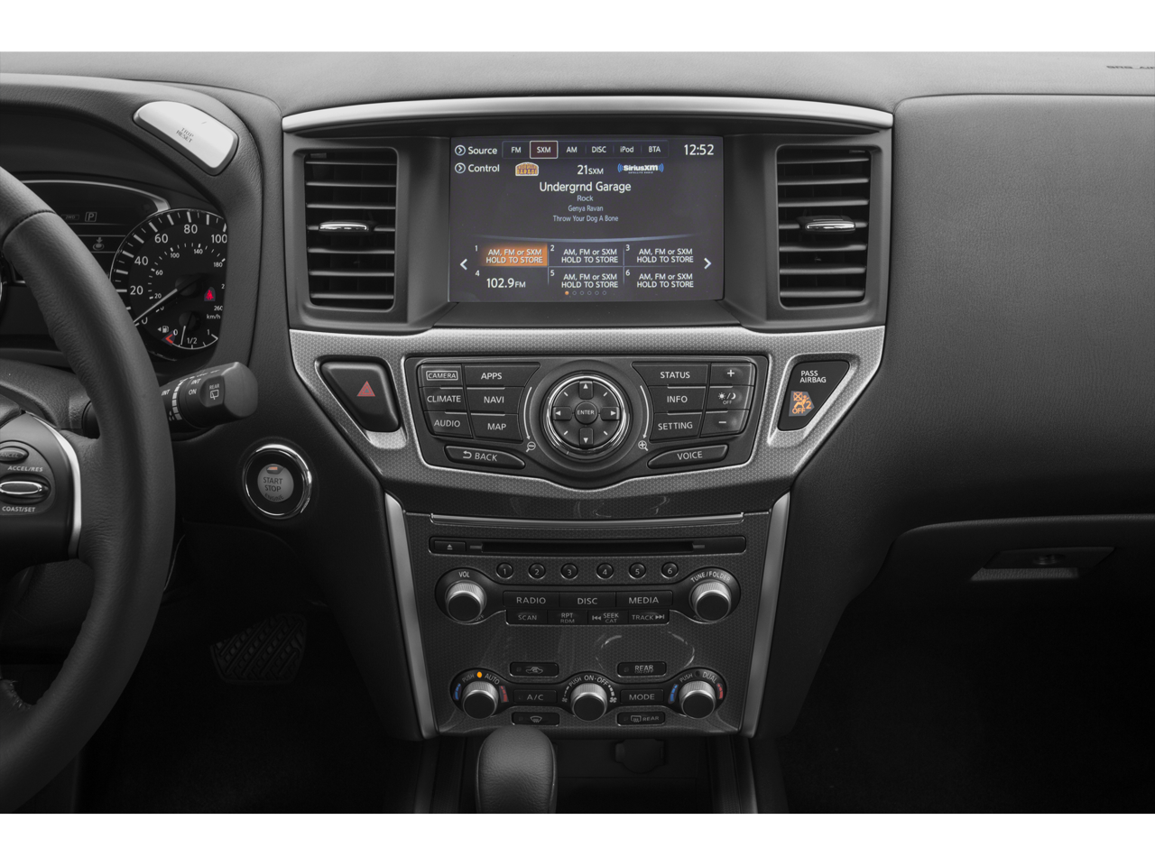 - Radio: AM/FM/CD Audio System w/NissanConnect -inc: 6 speakers, 8" color display w/multi-touch control, HD Radio, SiriusXM satellite radio, USB connection ports (2 type A) for iPod interface and other compatible devices, SiriusXM Travel Link (weather, fuel prices, movie listings, stock info and sports), Bluetooth hands-free phone system and streaming audio via Bluetooth