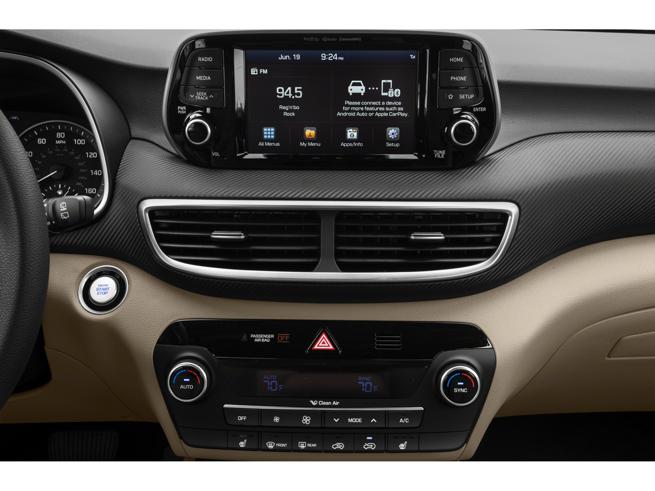 Check out all of the features on this 2021 Hyundai Tucson Option Group 01, Wheels: 19 x 7.5J Alloy, 4-Wheel Disc Brakes, 8 Speakers, ABS brakes, Air Conditioning, AM/FM radio: SiriusXM, Apple CarPlay & Android Auto, Auto-dimming Rear-View mirror, Automatic temperature control, Axle Ratio: 3.195, Brake assist, Bumpers: body-color, Cargo Cover, Cargo Net, Carpeted Floor Mats, Delay-off headlights, Driver door bin, Driver vanity mirror, Dual front impact airbags, Dual front side impact airbags, Dual USB Port, Electronic Stability Control, Emergency communication system: Blue Link Connected Car Service (3-year complimentary subscription), Exterior Parking Camera Rear, First Aid Kit, Four wheel independent suspension, Front anti-roll bar, Front Bucket Seats, Front Center Armrest, Front dual zone A/C, Front fog lights, Front reading lights, Fully automatic headlights, Garage door transmitter: HomeLink, Heated door mirrors, Heated Front Bucket Seats, Heated front seats, Illuminated entry, Leather Shift Knob, Low tire pressure warning, Mudguards, Occupant sensing airbag, Outside temperature display, Overhead airbag, Overhead console, Panic alarm, Passenger door bin, Passenger vanity mirror, Power door mirrors, Power driver seat, Power Liftgate, Power steering, Power windows, Radio: Infinity Audio System, Rear anti-roll bar, Rear seat center armrest, Rear window defroster, Rear window wiper, Remote keyless entry, Reversible Cargo Tray, Roof rack: rails only, Security system, Speed control, Speed-sensing steering, Split folding rear seat, Spoiler, Steering wheel mounted audio controls, Tachometer, Telescoping steering wheel, Tilt steering wheel, Traction control, Trip computer, Variably intermittent wipers, and YES Essentials Stain-Resistant Cloth Seat Trim.