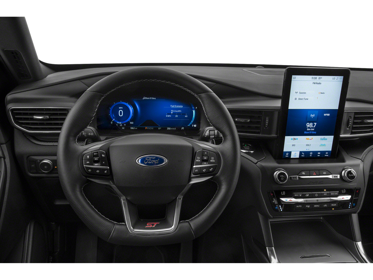 Backup Camera, Explorer ST, 10-Speed Automatic, 4WD, Ebony w/Leather Seating Surface Sprt Captain's Chairs, 10.1 LCD Capacitive Portrait Touchscreen, 2 Additional Speakers, 3rd row seats: bench, Equipment Group 401A, Evasive Steering Assist, Ford Co-Pilot360 Assist+, High-Performance Front & Rear Brakes, Intelligent Adaptive Cruise Control, Leather Htd/Ventilated Sport Captain's Chairs, Premium Technology Package, Speed Sign Recognition, ST High Package, ST High-Performance Pack, ST Street Pack, Third Row PowerFold (Folds Flat), Twin Panel Moonroof, Voice Activated Navigation System, Voice-Activated Touchscreen Navigation System, Wheels: 21 Aluminum.