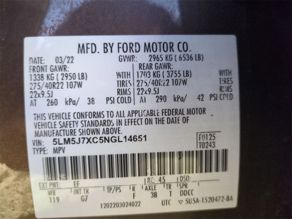 Backup Camera, Push Button Start, 10-Speed Automatic, AWD, Sandstone w/Premium Lthr Heated/Ventilated Fnt Captain's Chairs, 4-Pin & 7-Pin Connectors, Blind Spot Information System, Class IV Hitch & Wiring, Class IV Trailer Tow Package, Elements Package Plus, Equipment Group 201A, Head-Up Display, Lincoln Co-Pilot360 1.5 Plus, Phone As A Key, Power moonroof: Panoramic Vista Roof, Smart Trailer Tow, Trailer Sway Control, Wheels: 22 Bright-Machined Aluminum.