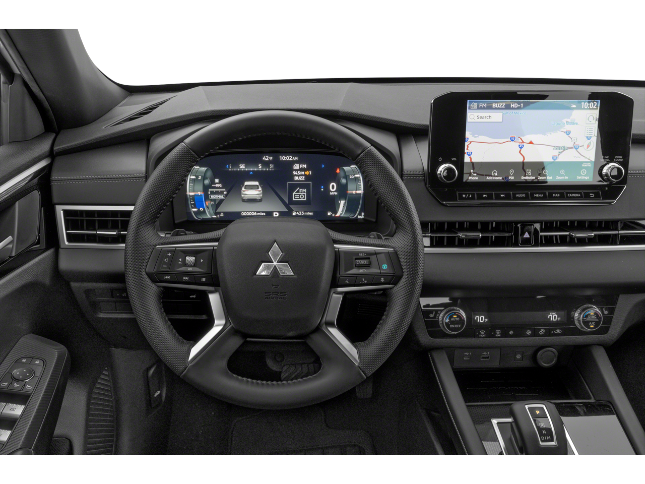 • Radio: AM/FM 9.0" Navigation w/Smartphone Link -inc: 6 speakers, Apple CarPlay, Google Android Auto, SXM all-access and SXM traffic and travel link w/90-day subscription, Mitsubishi Connect, HD Radio, Bluetooth® wireless technology, steering wheel controls for phone, audio and voice recognition and USB ports