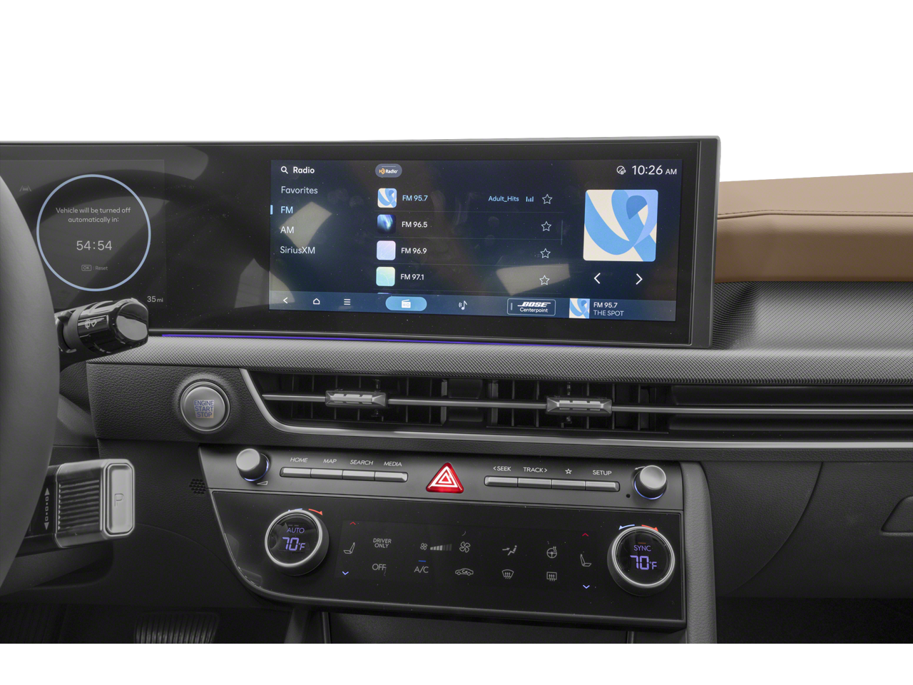 - Radio: AM/FM/HD/SiriusXM -inc: 12.3" high-resolution touchscreen, Bose premium audio w/12 speakers (1 center channel, 2 dash, 2 front tweeters, 4 door mounted, 2 rear mounted speakers plus 1 rear mounted subwoofer), dynamic voice recognition, smartphone integration, Bluetooth, Over-The-Air updates, USB connectivity, Blue Link connected car, Android Auto/Apple CarPlay capability (wireless and wired), HERE HD traffic and diversity antenna (navigation and premium audio)