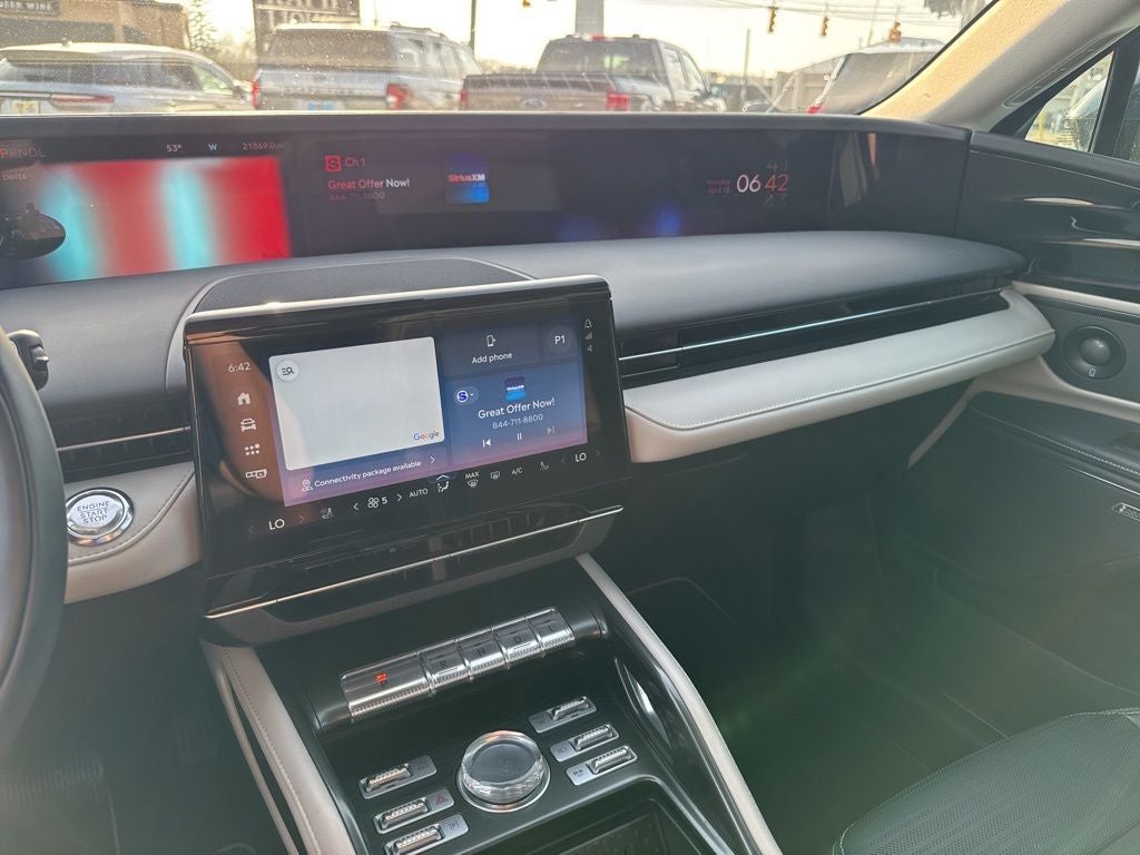 • Radio: AM/FM -inc: 10 speakers including subwoofer, Lincoln Connect, 11.1" centerstack touchscreen, 48" display w/configurable instrument cluster, 5G connectivity, Google maps, wireless Apple CarPlay and Android Auto compatibility, 911 Assist, Lincoln premium connectivity (1-year plan included), SiriusXM w/360L w/a 3-month prepaid subscription including super categories/live sports categories, For You recommendations and SiriusXM listener profiles, SiriusXM audio and data services each require a subscription sold separately, or as a package, by Sirius XM Radio Inc, Your SiriusXM service will automatically stop at the end of your trial unless you decide to subscribe, If you decide to continue service after your trial, the subscription plan you choose will automatically renew thereafter and you will be charged according to your chosen payment method at then-current rates, Fees and taxes apply, To cancel you must call Sirius XM at 1-866-635-2349, See SiriusXM customer agreement for complete terms at www.siriusxm.com, All fees and programming subject to change, Not all vehicles or devices are capable of receiving all services offered by SiriusXM, Current information and features may not be available in all locations, or on all receivers, Satellite and streaming lineups vary slightly